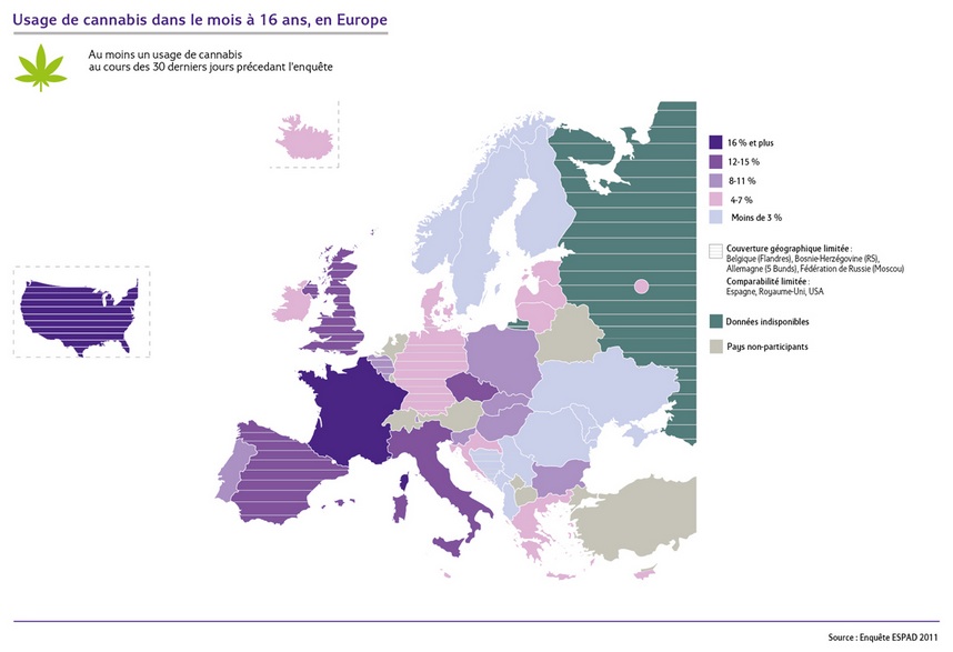 La France est championne d’Europe chez les jeunes de 17 ans en terme d’expérimentation du cannabis et d’usage régulier. Elle compte 14 millions d’usagers occasionnels. Pourtant, la loi sur les stupéfiants de 1970 est l’une des plus strictes en Europe. Elle repose sur trois principes : l’interdiction de l’usage, l’orientation de l’usager selon sa personnalité et son profil vers une réponse pénale d’ordre sanitaire ou pédagogique et la répression du trafic et des profits à tout niveaux.