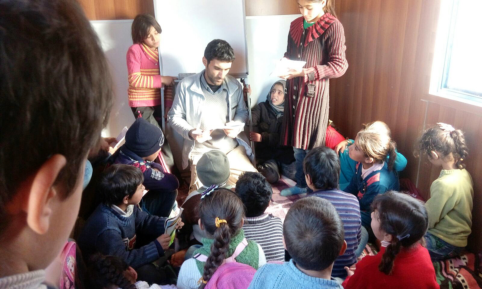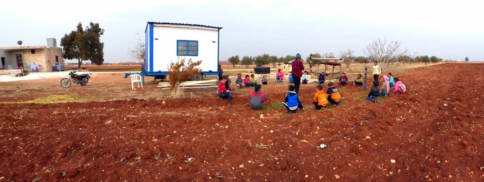 Trois jeunes syriens sont à l’origine de cette initiative (voir notre entretien avec Khaldoun). Le projet a commencé à se développer dans la région d’Idleb, dans des zones hors du contrôle de l’armée syrienne et désormais aux mains de différents groupes comme Jabhat al Nosra. Pour ces jeunes, il était essentiel de développer des projets à destination des enfants, qui représentent la moitié de la population syrienne et sont les plus vulnérables en temps de guerre. Aujourd’hui, nombreux sont les enfants contraints de travailler ou enrôlés dans des groupes armés. L’accès à l’éducation est donc primordial pour ces générations d’enfants qui grandissent et qui ont le droit à un avenir professionnel.